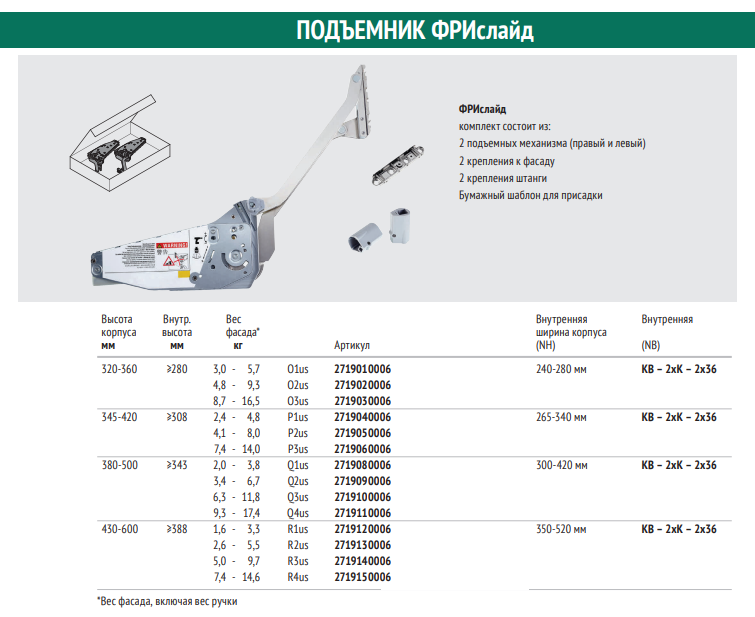 Подбор подъёмных механизмов Kesseböhmer
